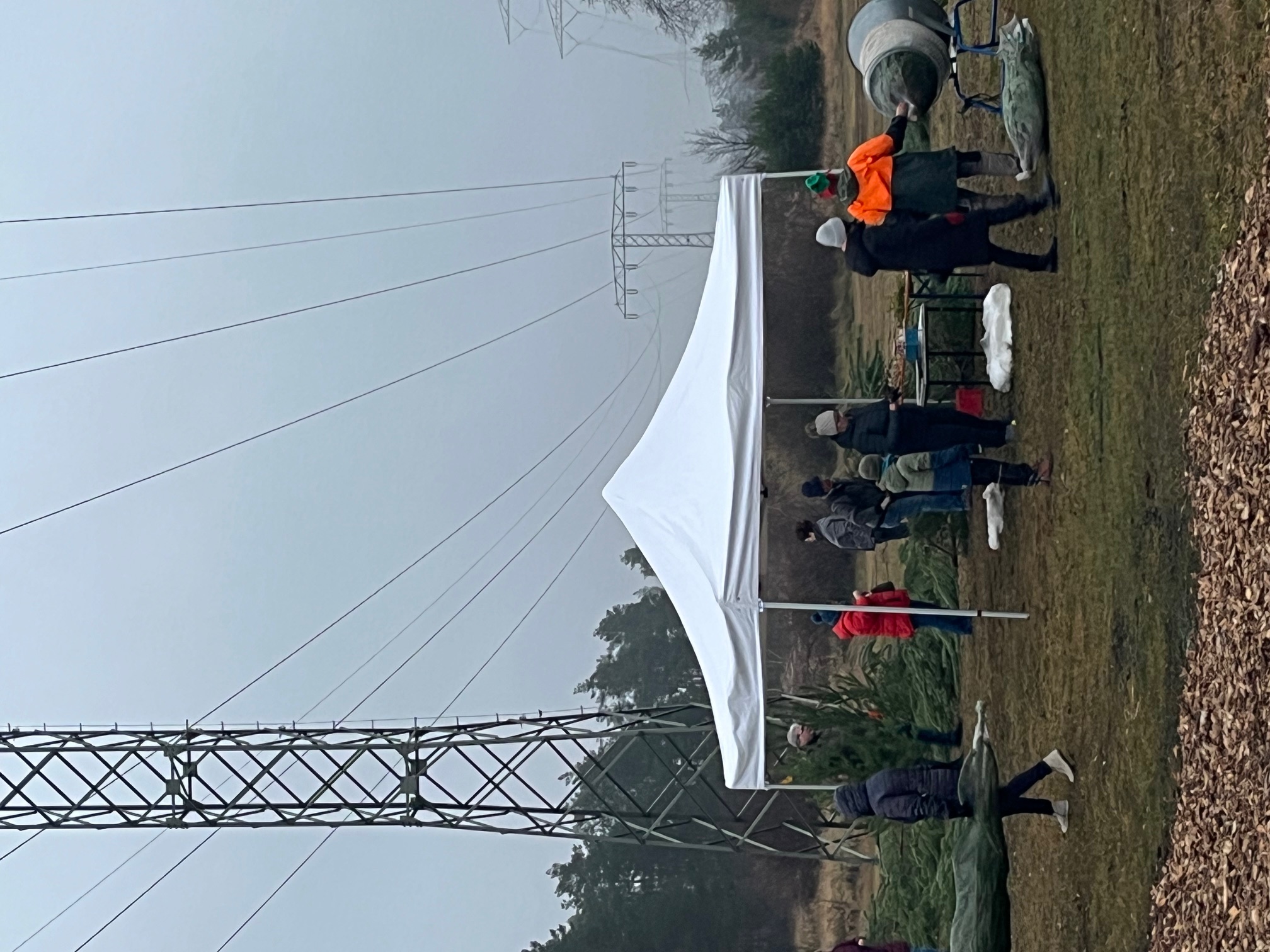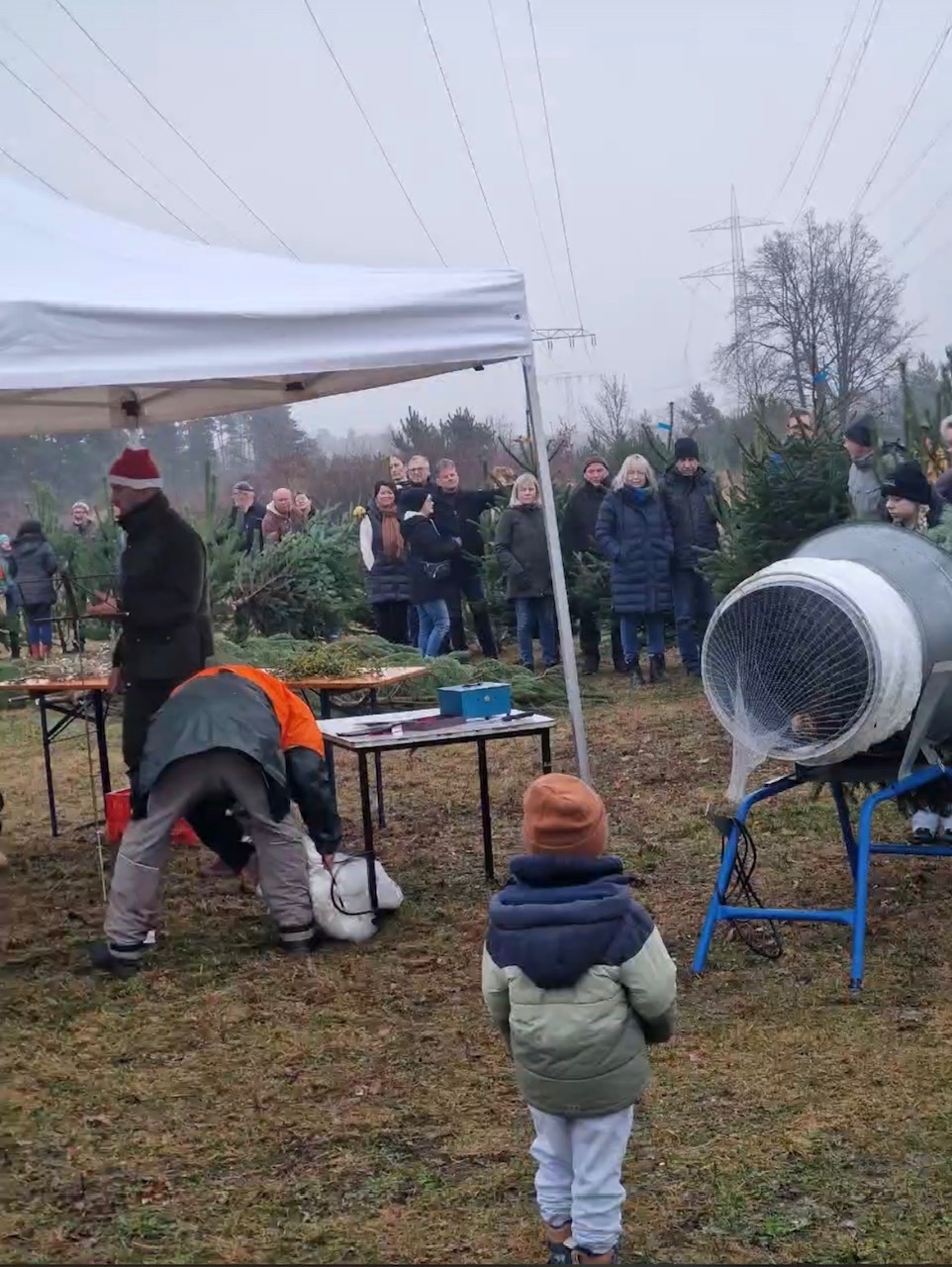 Am Samstag vor dem 3. Advent fand traditionell der Weihnachtsbaumverkauf der Forstbetriebsgemeinschaft Waldgemeinschaft "Am Senftenberger See" bei uns vor dem Hofalden statt. Das Treiben gehört bei vielen Familien fest in den Kalender. Kiefern und Nordmanntannen wurden aufgestellt, begutachtet und anschließend natürlich bei Harald K. durchs Netz gezogen. Nach getaner Arbeit gab es dann für die Meisten das kulinarische Angebot mit einer Domins Bratwurst, Hosenaer Glühwein und natürlich einem Peickwitzer Buchweizenplins. Anni und Linda gaben am Ofen ihr Bestes, denn in einem Familienbetrieb wird jeder mit einbezogen!